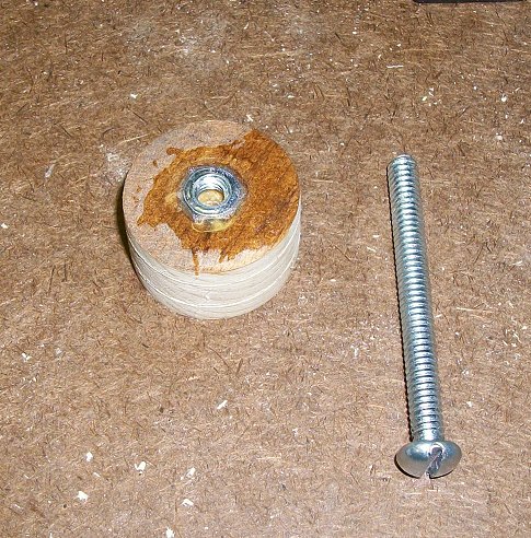 Once it was the perfect diameter, I had to make countersinks on each side for the nuts, one that would be epoxied to this piece and one that would remain on the screw, holding the washer assembly together on the horn.